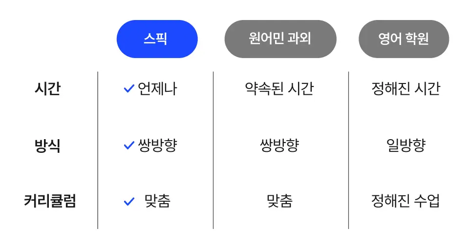 스픽(Speak)은 AI 기반 영어 스피킹 훈련 앱으로, 실제 회화 중심 학습에 특화된 서비스입니다. 자연스러운 발음 훈련, 실시간 피드백, AI 튜터와의 대화 기능 등 차별화된 기능을 제공하는 만큼 가격이 궁금하신 분들이 많습니다.