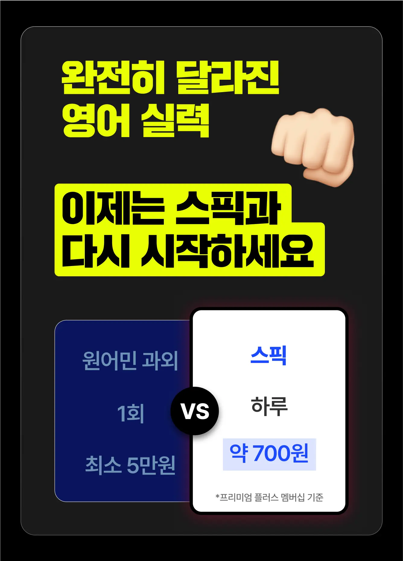 스픽(Speak)은 회화 실력을 빠르게 높이고 싶은 분들에게 최적화된 영어 학습 앱입니다. 특히 프리미엄 및 프리미엄 플러스 요금제를 최대 64%까지 할인받을 수 있는 방법이 다양하게 제공되니, 할인코드 및 파트너 링크를 적극적으로 활용해보세요.