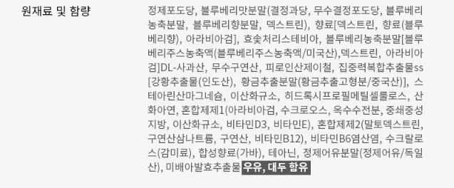 - 비헴철(철분의 일종으로 철분 결핍을 예방하고 혈액 생성을 돕는 효능)