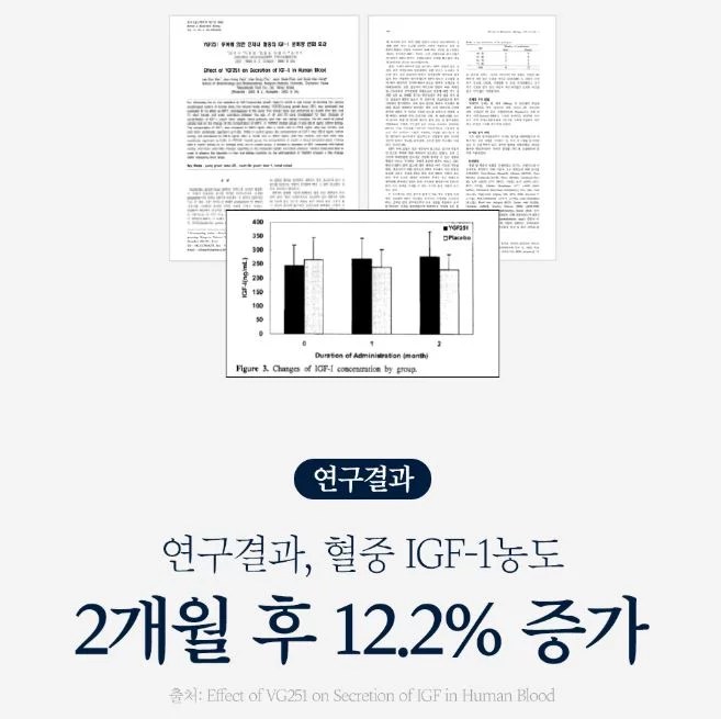 특허원료인 한속단달개비라고 불리는 성분도 오랜 연구 끝에 키앤정에 넣었는데 임상실험결과에 따르면 성장인자인 IGF-1의 수치가 2개월 후 12.2% 올랐습니다.