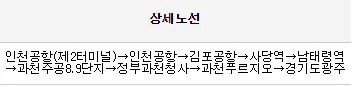 올 때는 출발할 때의 역순입니다. 인천공항 2터미널을 기점으로 김포공항을 거쳐 경기도광주에 도착합니다.